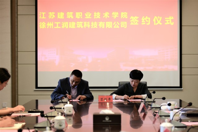 5月4日上午,公司与徐州工润建筑科技有限公司校企合作签字仪式在图书馆会议室举行。公司党委副书记梁惠、徐州工润建筑科技有限公司总经理邱户修、副总经理韩大锋、综合管理部部长张玉倩以及徐州力山建设工程有限公司总经理助理陈丕方与公司科技与校企合作处、建筑工程技术公司负责人出席签字仪式。