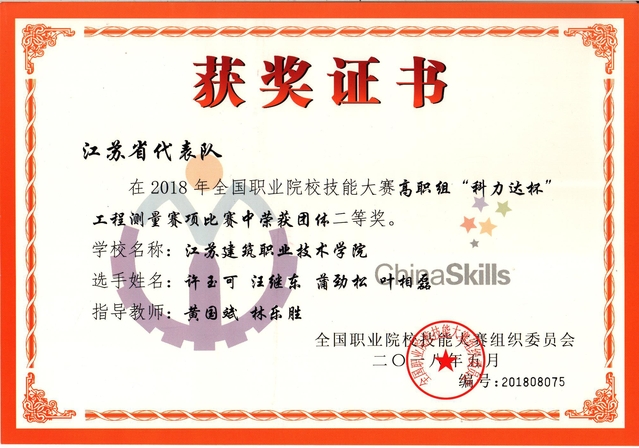 本次赛事共有来自全国83所高职院的332名选手参加了比赛,参赛队规模、参赛人员数量、覆盖地区等多项指标都在2018 年全国职业院校技能大赛82个赛项中名列前茅,开创了测绘地理信息类专业工程测量赛项的新纪录。今年的测绘大赛二等水准测量高差变化大,点位位置赛前不公布,增加了比赛难度,同时本次奖项只设团体奖,奖项减少,获奖难度增大,公司代表队在高手林立的参赛队伍中能够获得二等奖极为不易,是公司领导大力支持和全体参赛师生共同努力的结果。通过本次比赛培养了员工顽强拼搏的作风,团结协作的意识和测绘人不怕苦不怕累的优良品质,员工心理素质得到了锤炼,教师指导实践能力得到提高。(林乐胜 黄国斌)