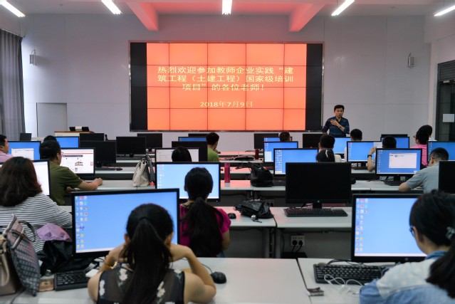 7月9日上午,江苏省高职院校国家级培训项目建筑工程(土建施工)教师企业实践开班典礼在威廉希尔建筑技术馆举行。建工公司经理陈年和、副书记曹万俊、副经理曹洪吉出席开班典礼。部分培训教师、班级管理人员和来自全省20所高职院校的30名专业教师参加了开班典礼。典礼由建工公司副经理曹洪吉主持。
