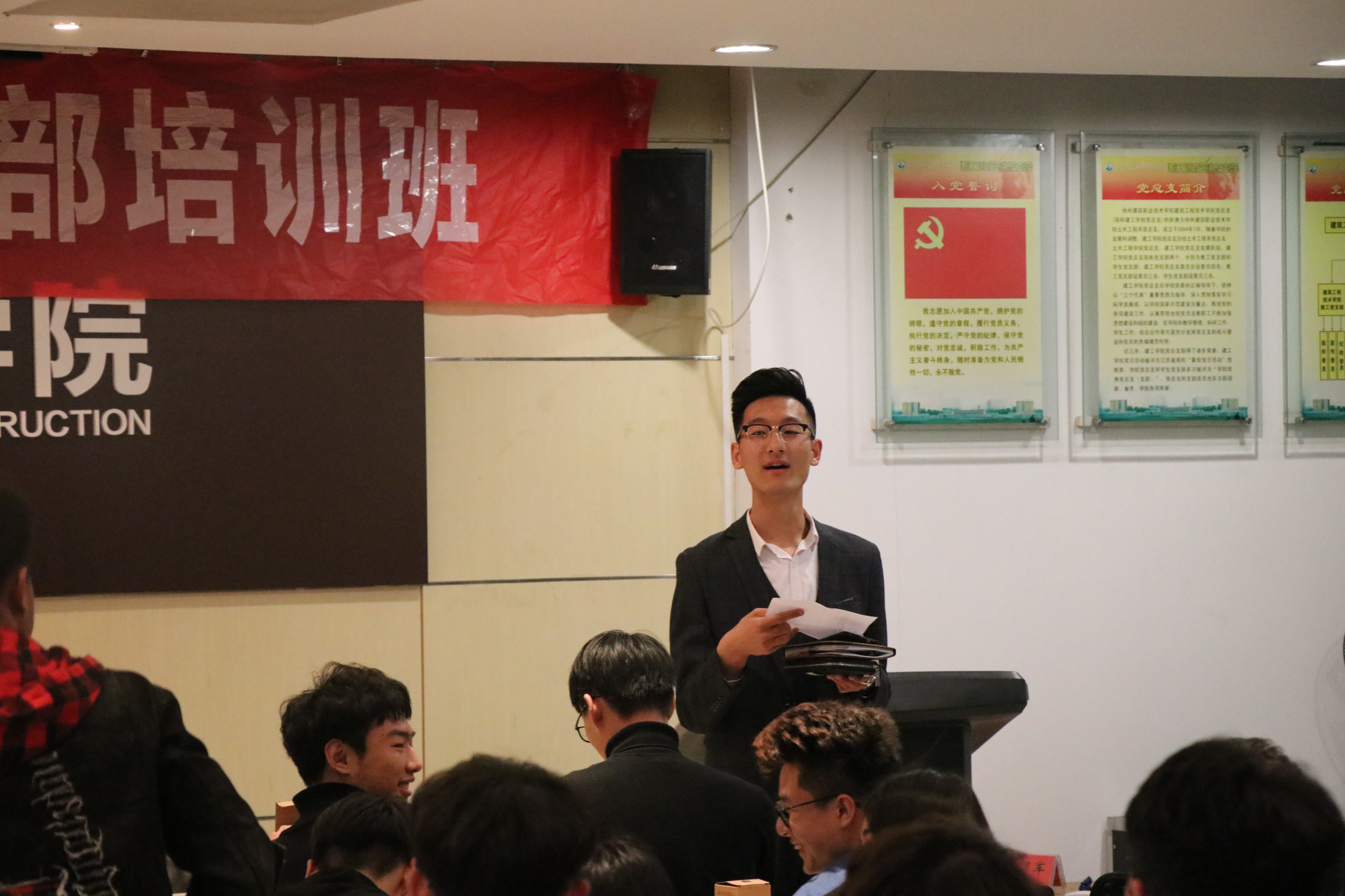 2019年3月27日晚七点,威廉希尔体育第一届员工干部培训班系列讲座在利亚楼会议室如期举行。此次讲座邀请了威廉希尔体育13级的优秀毕业生蒋志新学长作为本场讲座的主讲人,分团委员工会、社团联合会的主要员工干部共四十多人参加了培训。