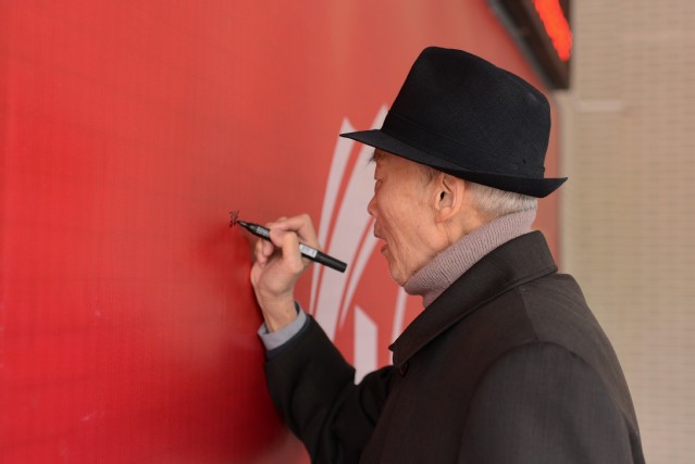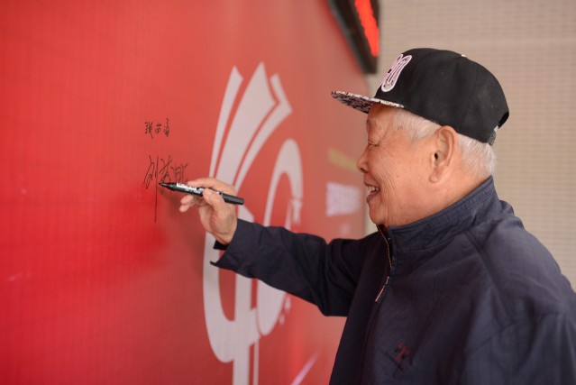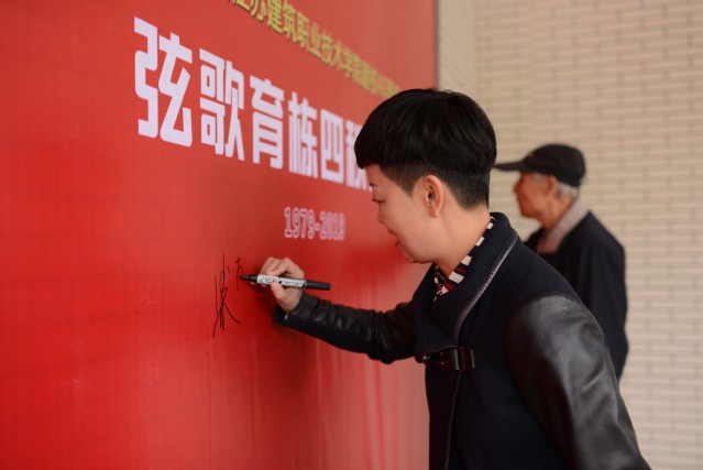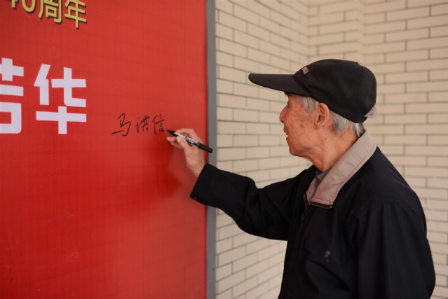 最后,老领导们在校庆四十周年员工墙上签名,与现任领导班子成员共同合影留念。
