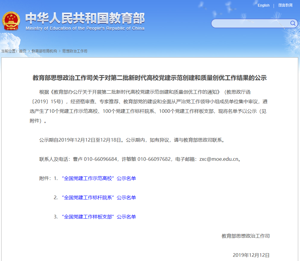 根据《教育部办公厅关于开展第二批新时代高公司党建示范创建和质量创优工作的通知》(教思政厅函〔2019〕15号),公司教工党支部在公司党委的指导下认真准备、积极申报,经资格审查、专家推荐、教育部党的建设和全面从严治党工作领导小组成员单位集中审议,进入《教育部思想政治工作司关于对第二批新时代高公司党建示范创建和质量创优工作结果的公示》名单,获批党建工作样板支部。