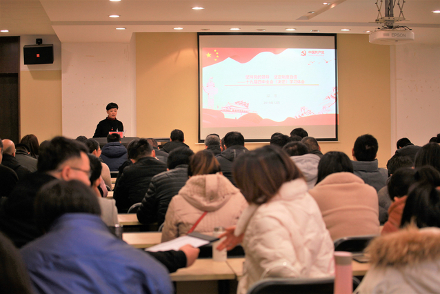 2019年12月24日下午,党的十九届四中全会精神宣讲会在利亚楼报告厅举行,公司党的十九届四中全会精神宣讲团成员、公司党委副书记梁惠主讲,威廉希尔体育和建筑管理全体教师参加。