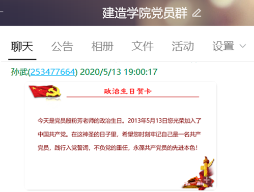在党员过“政治生日”当月内,党支部给过生日党员发送一条祝福短信。
