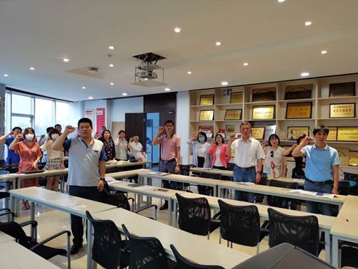 六位过生日党员带领全体党员庄严举起右手,重温入党誓词。引领广大党员时刻牢记党员身份,时刻铭记入党誓言,自觉遵守党的章程,终身践行入党誓词。
