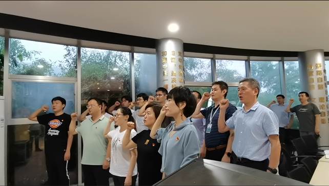 12位过生日党员带领全体党员庄严举起右手,重温入党誓词。引领广大党员时刻牢记党员身份,时刻铭记入党誓言,自觉遵守党的章程,终身践行入党誓词。