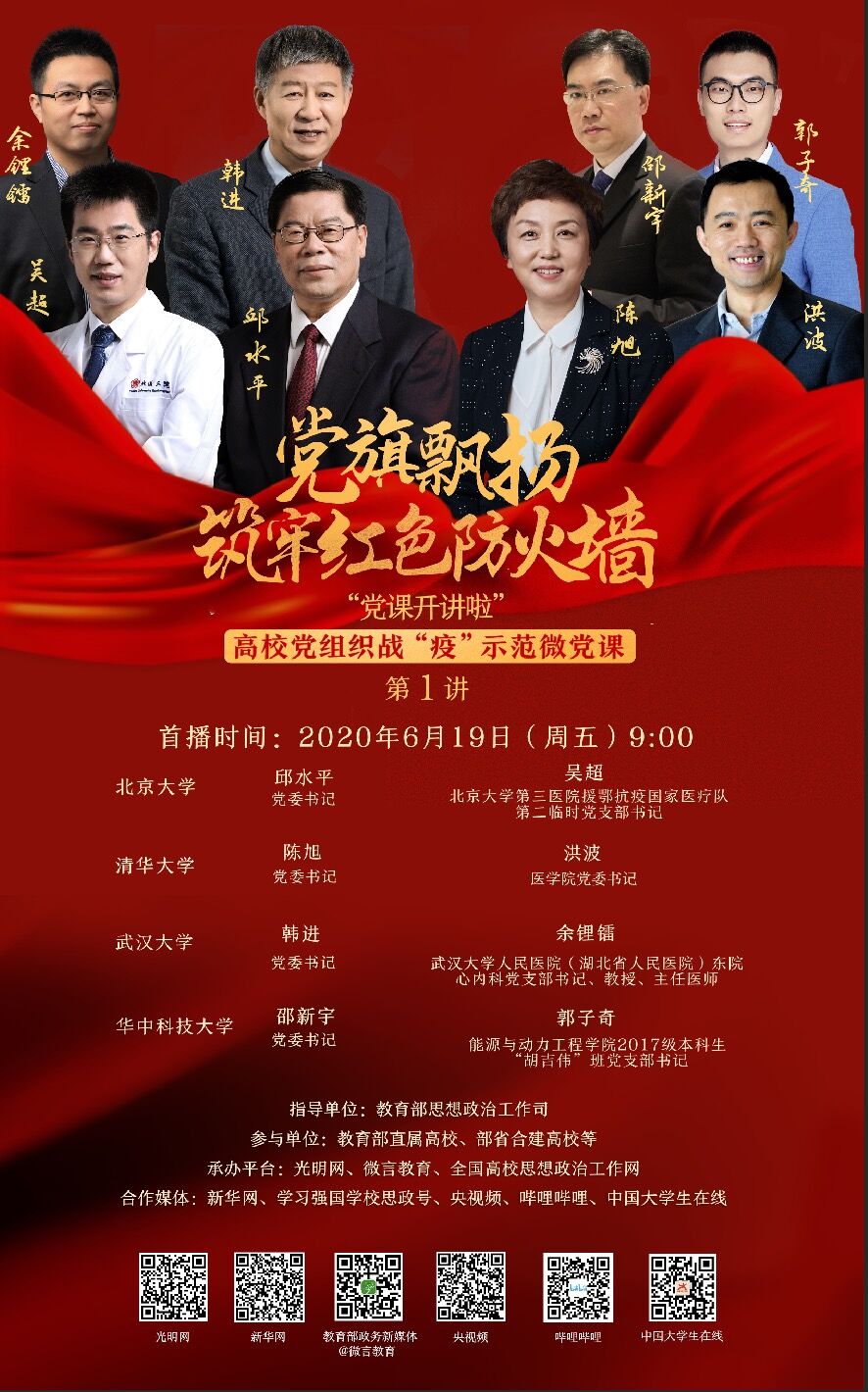 北京大学、清华大学、武汉大学、华中科技大学4所高校的党委书记和基层党组织书记围绕学习贯彻习近平总书记关于“让党旗在防控疫情斗争第一线高高飘扬”重要批示精神,结合公司工作实际,以“1+1”形式主讲首场微党课。