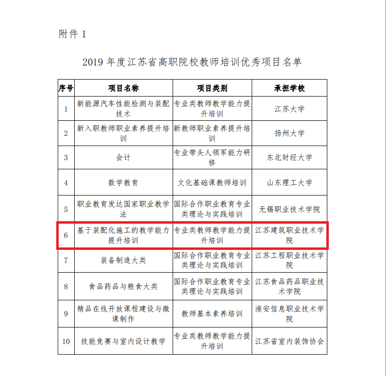 近日,江苏省高等职业教育教师培训中心下发《关于表彰2019年度全省高职院校教师培训优秀管理者、优秀授课教师(团队)和优秀项目的决定》(苏高职培函〔20201号),由公司承办的“基于装配化施工的教学能力提升培训”省培项目获评2019年度江苏省高职院校教师培训优秀项目,项目主持人程强强获评2019年度江苏省高职院校教师培训优秀管理者(基地管理者)。