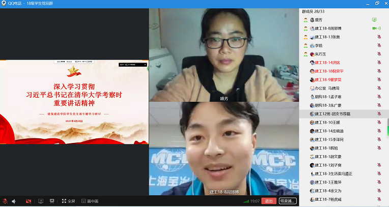 4月29日晚,威廉希尔体育员工党支部召开线上专题学习研讨,深入学习习近平总书记在清华大学考察时的重要讲话,进一步统一思想、提高认识。员工党支部全体党员参加会议。