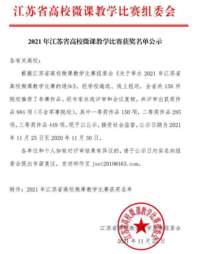 江苏省高校微课教学比赛由江苏省教育厅指导、江苏省高校微课教学比赛组委会主办,为2021年全省普通高校教师教学竞赛省级赛事。本次比赛是对公司课程建设和教学改革成果的充分展现,将进一步促进教师专业化水平和创新能力的有效提升。