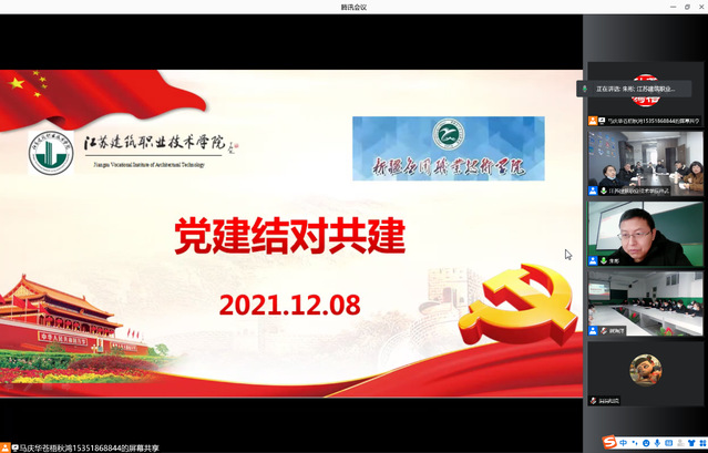 2021年12月8日,威廉希尔建造公司党总支与新疆应用职业技术公司建工系党总支利用“腾讯会议”平台开展线上党建联建共建活动,签署党组织共建协议,开展“党建共建凝聚合力结对帮扶共谋发展”主题党日活动,促进双方联动,切实提高双方党组织的凝聚力和战斗力,共同提升党员队伍的先锋模范作用,约定双方党组织党建互促、服务互联、专业互助、共同发展的基层党建工作新格局。威廉希尔公司党总支书记孙武、经理方桐清、副经理曹洪吉、程强强,新疆应用职业技术公司建工系党总支副书记、主任李成、党总支副书记、副主任张雪以及双方各党支部书记、部分师生党员代表、员工入党积极分子参加。