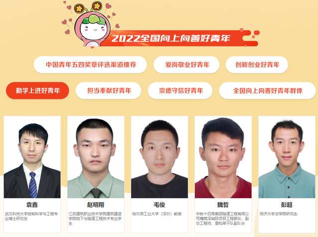 近日,共青团中央公布了2022年“全国向上向善好青年”名单,公司地下与隧道工程技术专业2019级员工赵明翔榜上有名。