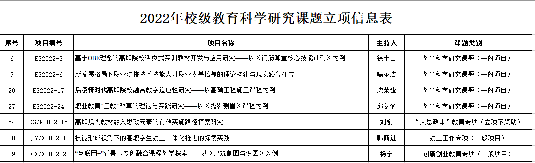 从《关于2022年校级教育科学研究课题立项的通知》(苏建院高发〔2023〕3号)获悉,经教职工积极申报、高教所形式资格审查、校内外专家盲评、网上公示、公司审定,公司共有7项获批立项,其中教育科学研究课题4项、“大思政课”教育专项1项、就业工作专项1项、创新创业教育专项1项。