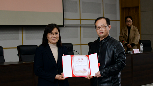 报告会前,举行威廉希尔体育员工成长成才导师聘任仪式,公司党总支书记韩鹤进为骆婷书记颁发聘书。