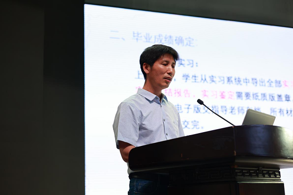 公司副经理曹洪吉给毕业生讲解离校前教学工作安排,从毕业生答辩工作安排、毕业成绩确定、答辩流程和答辩前任务四个方面进行了详细说明。