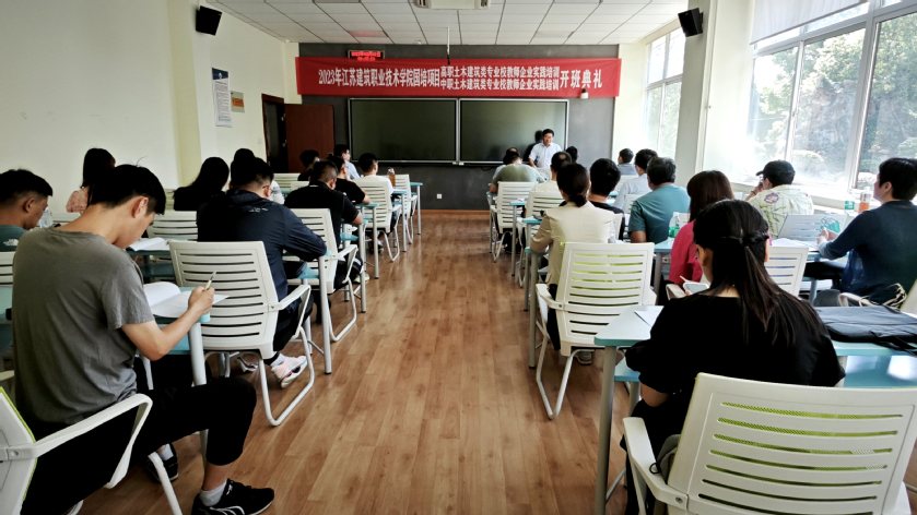 9月1日上午,由江苏省教育厅主办的2023年江苏省高职院校教师国家级培训项目建筑工程技术专业教师定向企业实践(项目编号:2023GZGP30)和2023年江苏省中职院校教师国家级培训项目土木建筑类专业教师企业实践(项目编号:2023ZGP-C103)两个国培项目在公司教一楼开班,董事长沈士德出席开班仪式,人事处处长朱铁壁、公司党总支书记韩鹤进、副经理程强强及相关负责同志参加开班仪式。开班仪式由程强强主持,共有来自全省16所高职院校的20名教师和19所中职院校的19名教师参加本次培训。