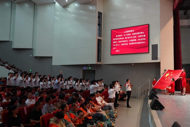 大会现场,46名新入职教师在江苏省教学名师孙韬的带领下进行了庄严的入职宣誓。