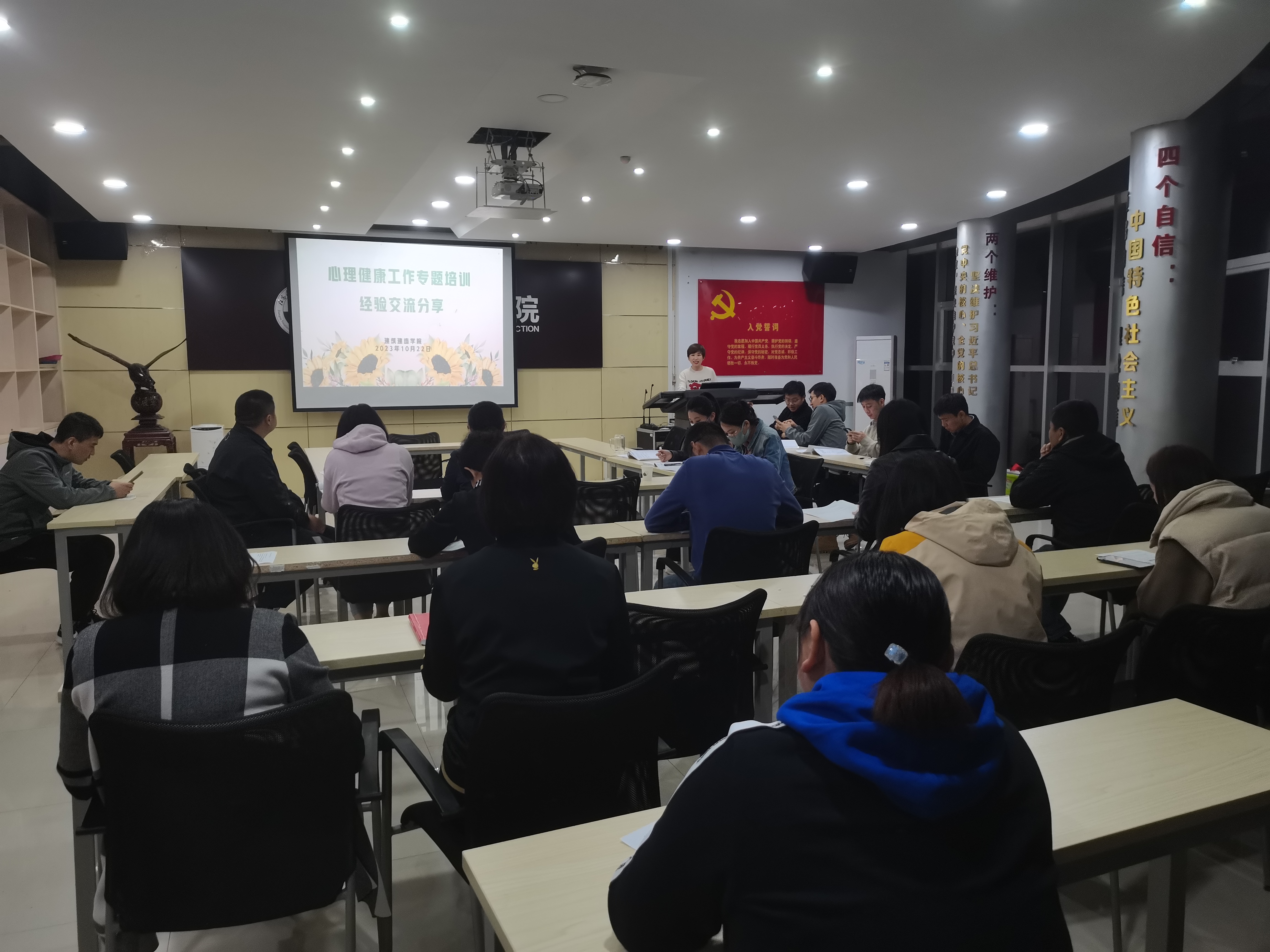 为积极应对新形势下老员工心理健康教育工作面临的困难与挑战,进一步提升班主任开展心理健康教育工作的能力,推进校园精神文明建设。威廉希尔体育于10月22日晚在利亚楼A115会议室举办心理健康工作专题培训。公司党总支副书记盛芳主持,全体专兼职辅导员参与了培训。