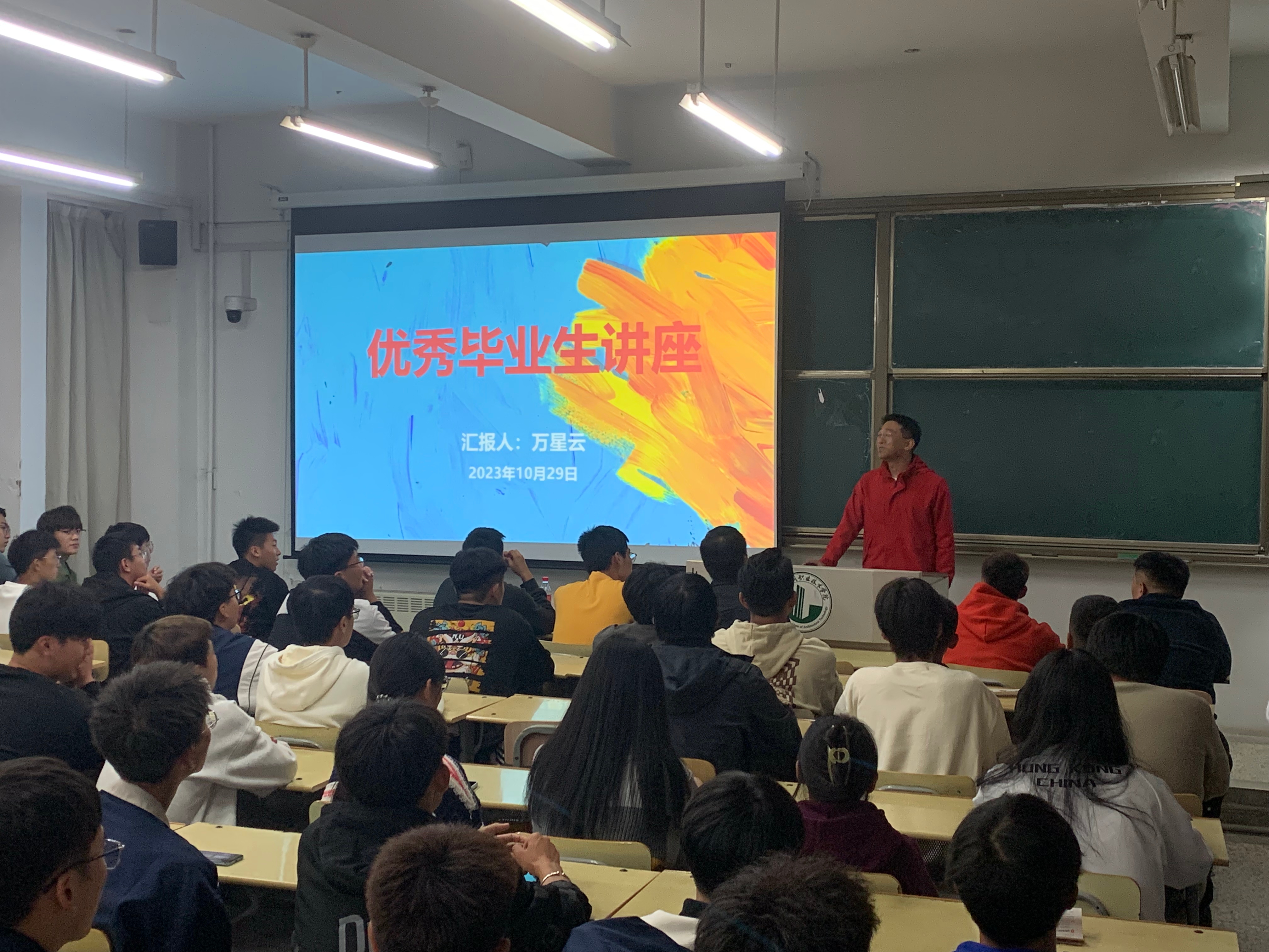 讲座上,万星云结合校园经历和自身实际工作情况,分享自己一路走来的所见所闻、所感所悟,内容涉及到在校期间的整体规划、就业之后的发展路径,特别是对当前的就业市场需求进行了详细的讲解。同时,他还鼓励同学们要奋发有为、不负韶华,在完成学习任务的情况下,要积极参与到其他校园活动中,丰富自己的人生阅历。