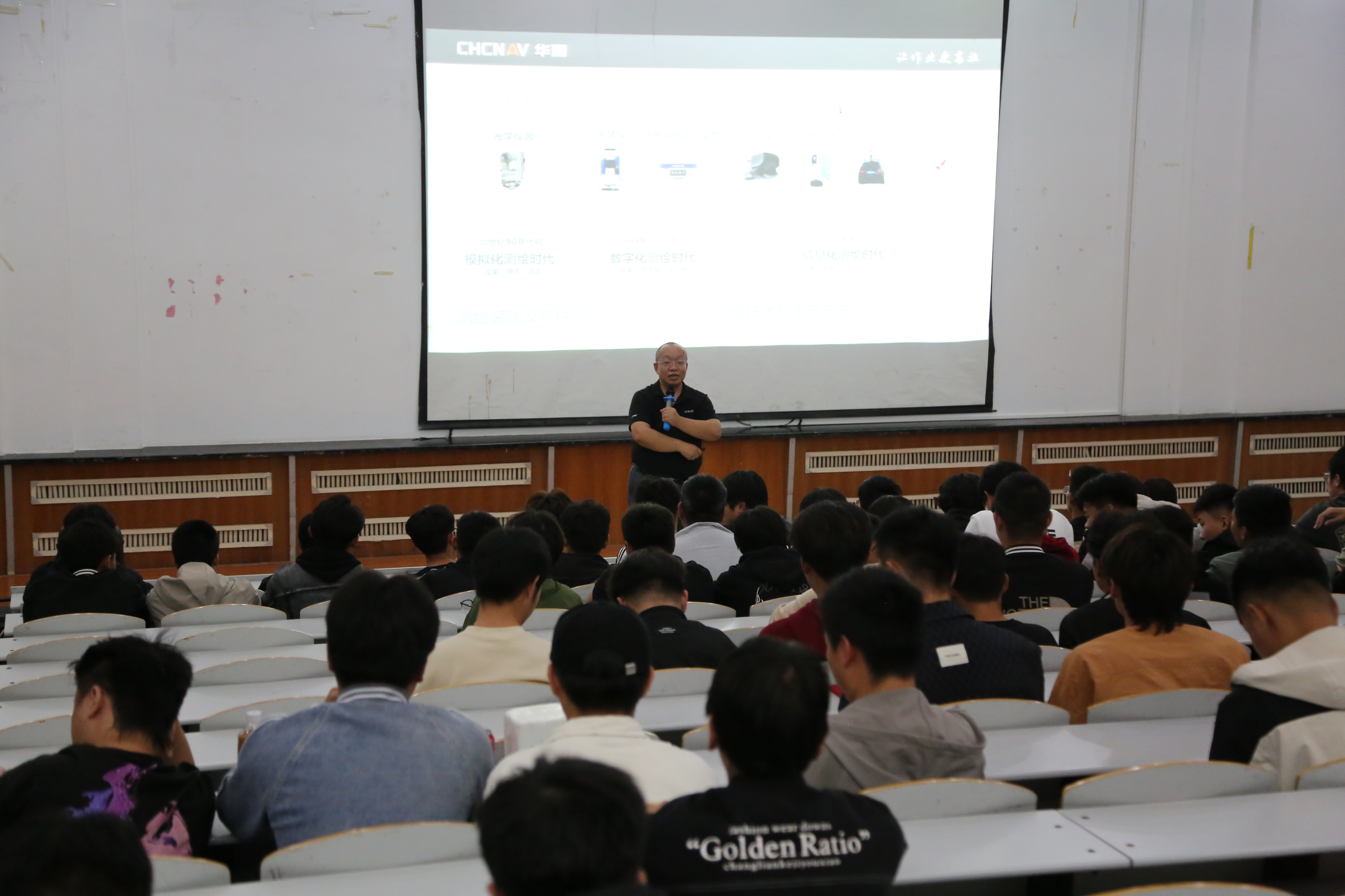 胡炜讲述了测绘技术从传统测绘、数字测绘到信息化测绘,再到智能测绘发展进步历程,介绍了智能RTK测量系统、激光雷达移动测绘系统、无人机测绘系统、无人船测量系统、监测集成系统、农机导航自动驾驶系统、数字施工管理系统、组合导航系统等八个当今前沿的测绘装备软件系统,通过讲解与图像、视频等多种方式为在座师生展示各种智能装备的作业原理、作业流程,整场讲座生动形象、引人入胜,师生们不时报以热烈的掌声。