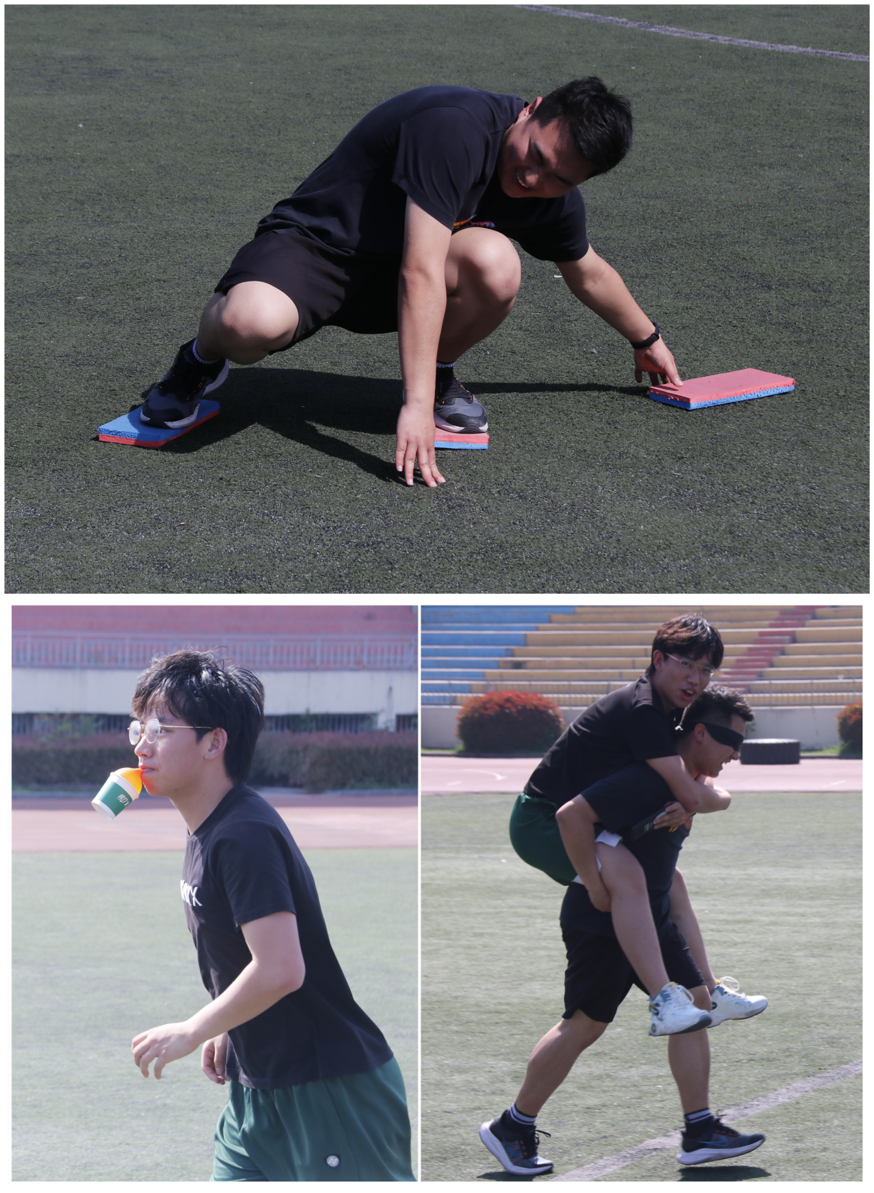 本次员工趣味运动会以单人、双人及集体三种参赛形式开展,设置了蒙眼击鼓、摸石过河、瞎子背瘸子、六人七足、赶小猪、气球托纸杯、有奖猜歌名等七个项目。