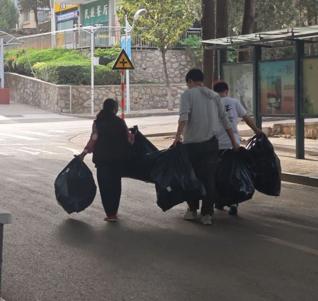 活动过程中,同学们参与热情高涨,通过两两组队的形式,帮助工作人员在校园和宿舍中收集丢弃的塑料水瓶和废弃纸盒,短时间内便收获了不少“战利品”。