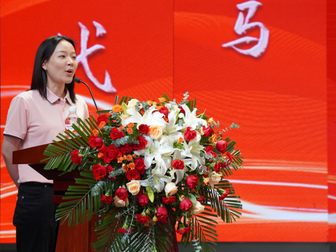 教师代表陈飞敏老师发言:叮嘱毕业生们追求进步不停止、遇到困难不后退、追逐梦想不放弃,不要满足于慵懒放空的“葛优躺”,也不要执着于火锅撸串的“小确幸”,星辰和大海都需要门票,优雅需要底气,华丽需要实力。衷心祝愿每一位毕业生在未来的日子里,平安喜乐。