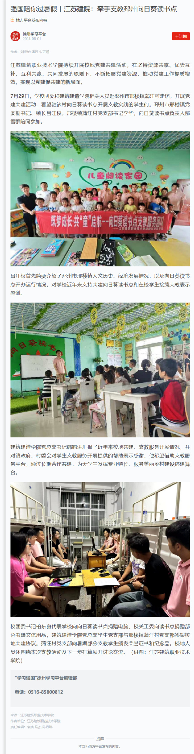【学习强国】江苏建院:牵手支教邳州向日葵读书点