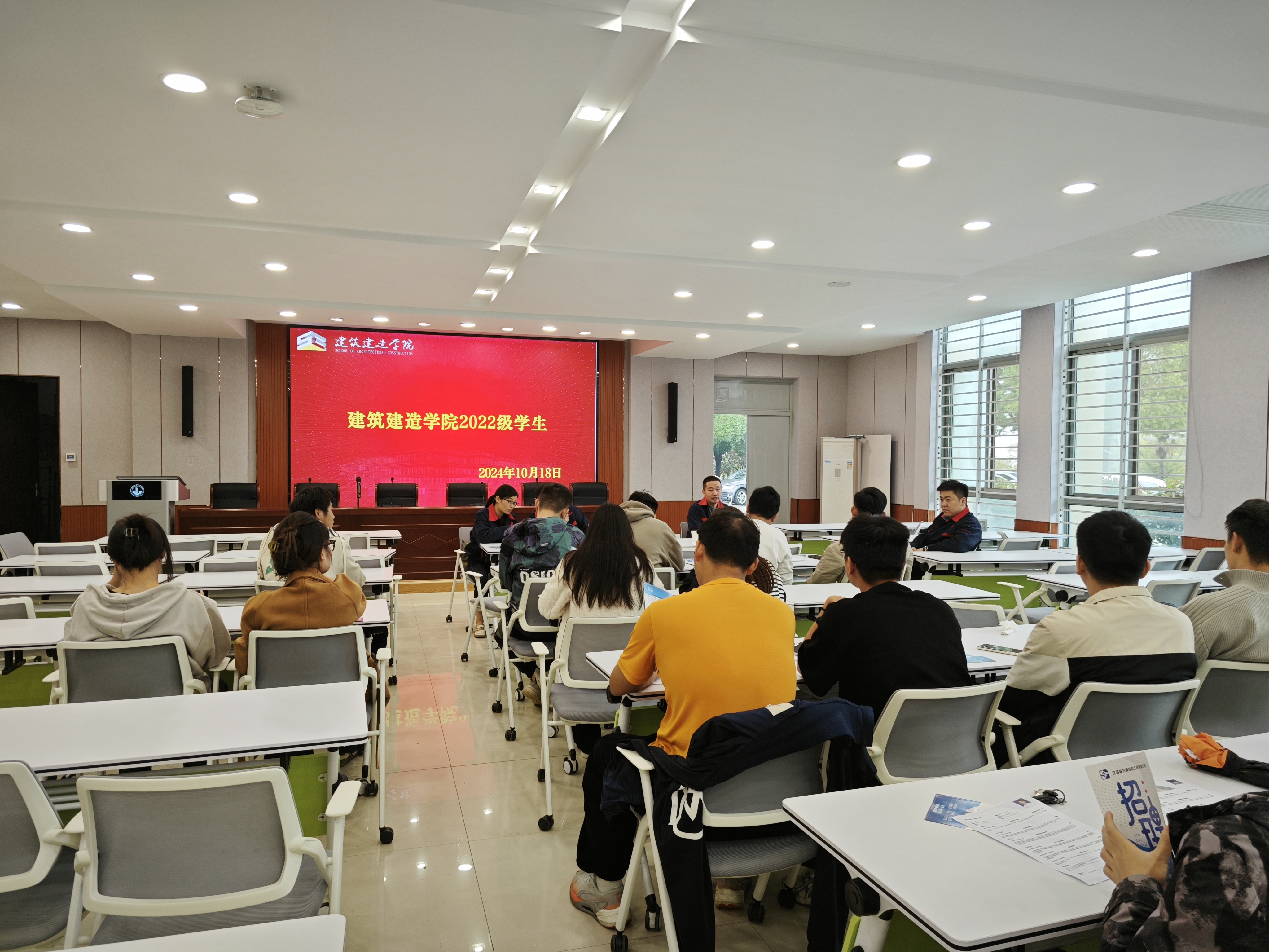 为发挥优秀员工对青年员工成长成才的榜样示范作用,提高毕业生就业能力,更好地进行职场定位和求职准备,10月18日,公司邀请12级优秀员工——侯浩同学为公司2022级建筑钢结构工程技术专业毕业生做就业指导讲座并召开企业专场招聘会。