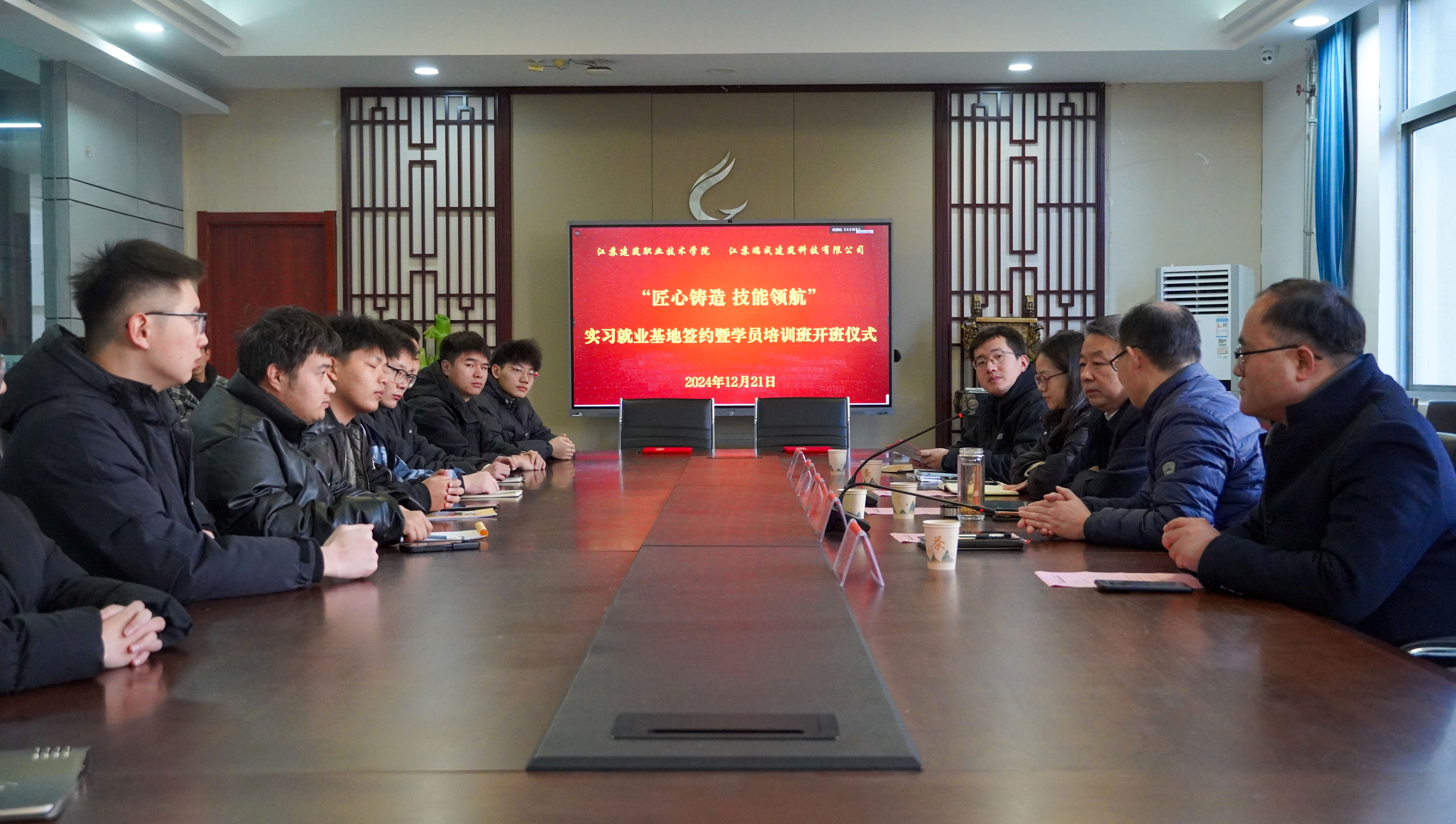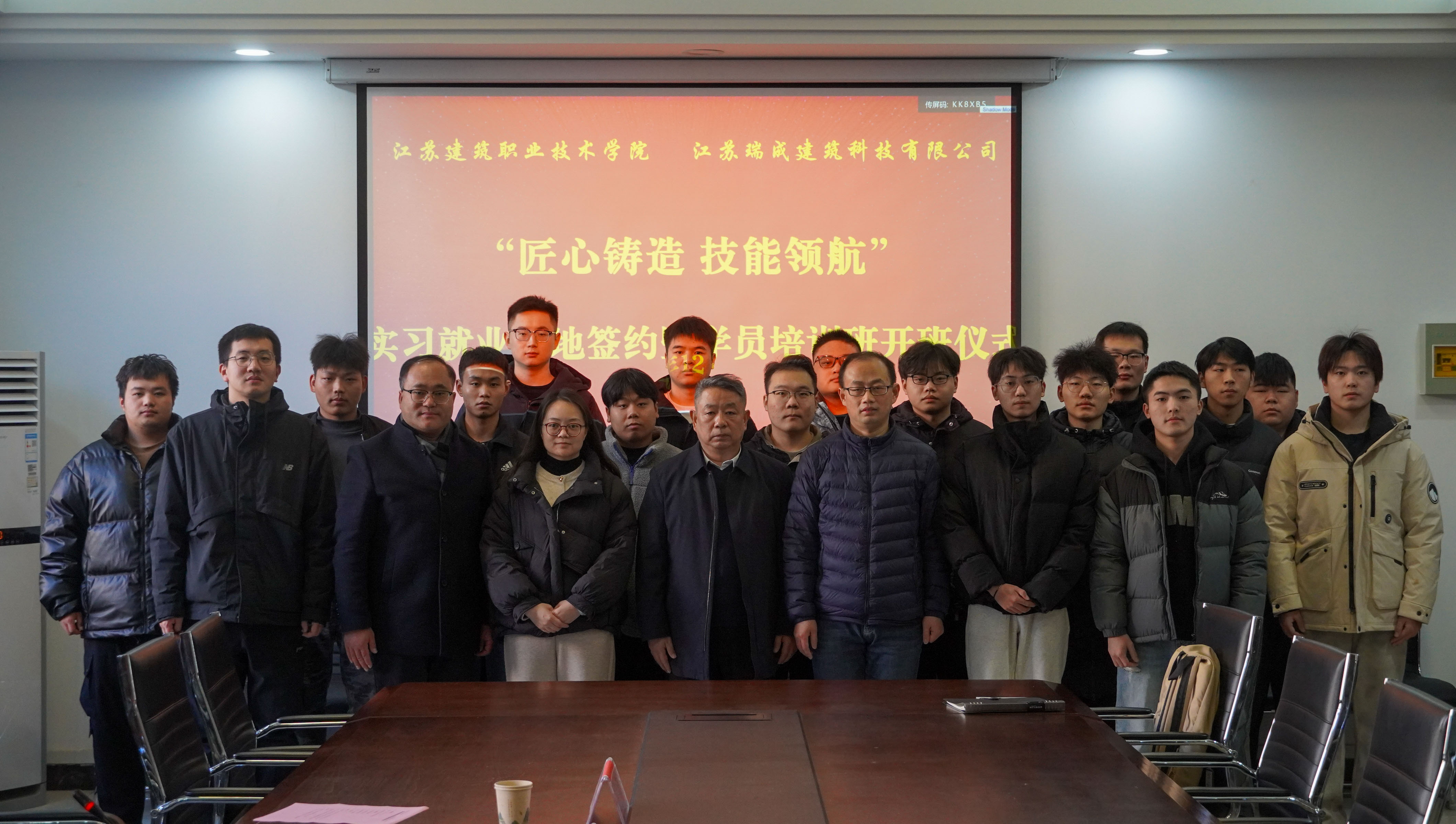 12月21日,公司与江苏瑞成建筑科技有限公司在利亚楼B106举行了实习就业基地签约暨学员培训班开班仪式。公司党总支书记韩鹤进,公司招生与就业处副处长周磊,江苏瑞成建筑科技有限公司总经理颜廷坚、人力资源部经理孙凤琴,以及培训班18名学员参加了本次会议。