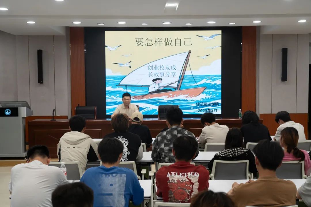 5月7日晚,威廉希尔体育在一站式员工社区“厚生学堂”举办鲁班课堂“员工引航•筑梦未来”系列讲座,首场讲座邀请了建筑工程技术专业2009级员工、江苏新东博建筑科技有限公司总经理石洹雨担任主讲嘉宾,以“要怎样做自己”为题进行就业创业经历分享,公司100余名员工参加本次活动。