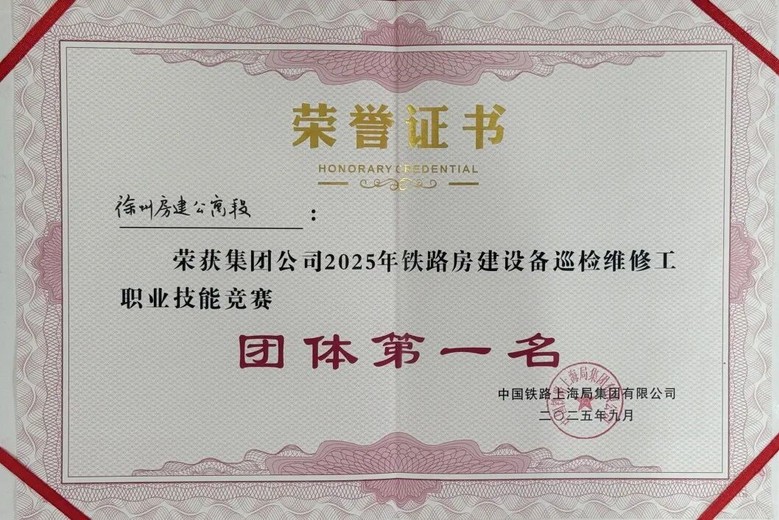 9月26日,在刚刚落幕的2025年上海铁路局集团铁路房建设备巡检维修工职业技能竞赛中,由公司孙秋荣、毛燕红、曲国鹏三位老师指导的徐州房建公寓段代表队凭借过硬的专业技能和稳定的临场发挥,一举夺得团体第一名、一名选手荣获个人第五名的优异成绩,创造了该段在此项赛事中的历史最好成绩。