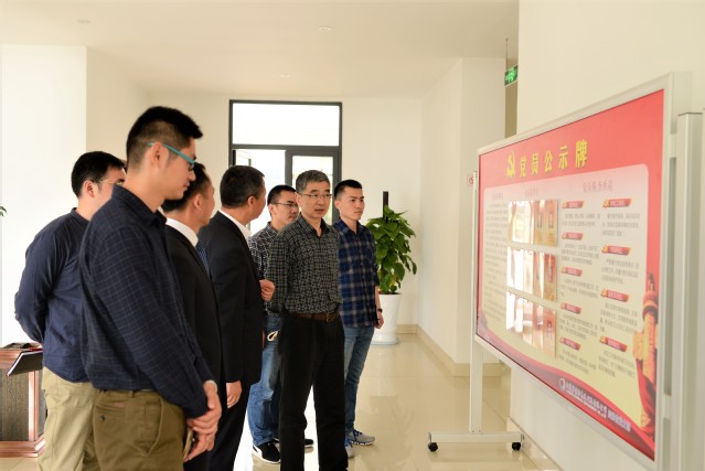 在泗洪南党支部,调研组认真听取了该支部书记钱科志同志关于党建工作“六微元素”工作法催生基层党建“动力源”的专题交流发言。该支部是江苏交通控股有限公司系统先进集体、先进党支部。其所创“六微元素”工作法,即“微平台、微课堂、微榜样、微服务、微积分、微论圈”在整个江苏交通控股系统党建工作中推广。此外,调研组还认真阅读了各支部党建工作台账,参观了各支部各具特色的党建工作室、党员活动中心等党员活动场所。
