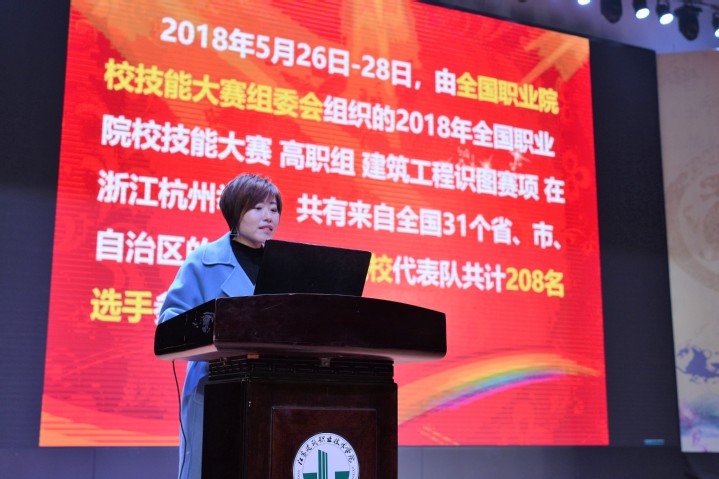 “鲁班杯”建筑识图技能竞赛指导老师王艳、“科力达杯”测绘比赛指导老师林乐胜、全国施工技术应用技能大赛指导老师安沁丽分别介绍了他们率队参加国赛的情况并为获奖同学颁奖。