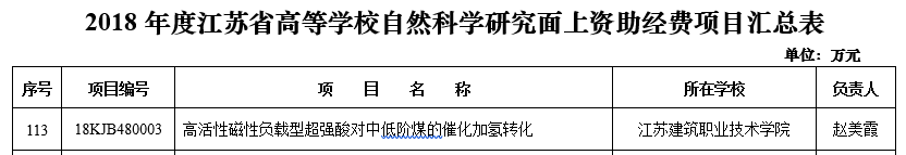 从《省教育厅关于下达2018年度江苏省高等公司自然科学研究面上项目的通知》苏教科〔2018〕6号获悉,公司赵美霞博士申报的项目获江苏省高等公司自然科学研究面上项目资助。