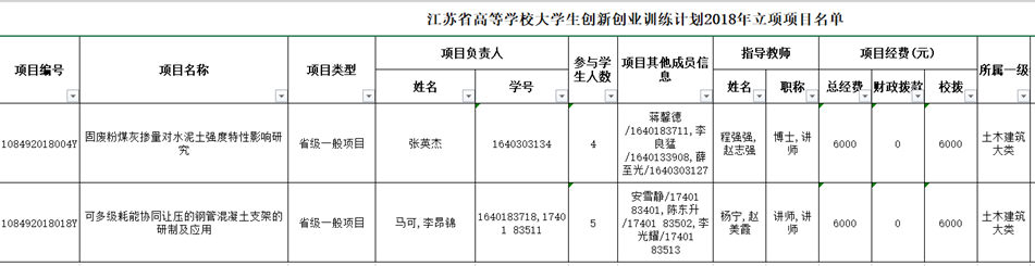 公司2项项目获2018年江苏省老员工创新创业训练计划立项