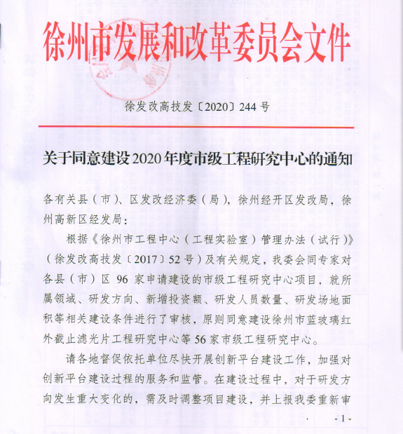 根据《关于同意建设2020年度市级工程研究中心的通知》(徐发改高技发〔2020〕244号),经徐州市发展和改革委员会组织专家对研究所属领域、研发方向、新增投资额、研发人员数量、研发场地面积等相关建设条件审核和现场考察,公司牵头申报的徐州市新型建筑工业化与信息化工程研究中心获批立项。
